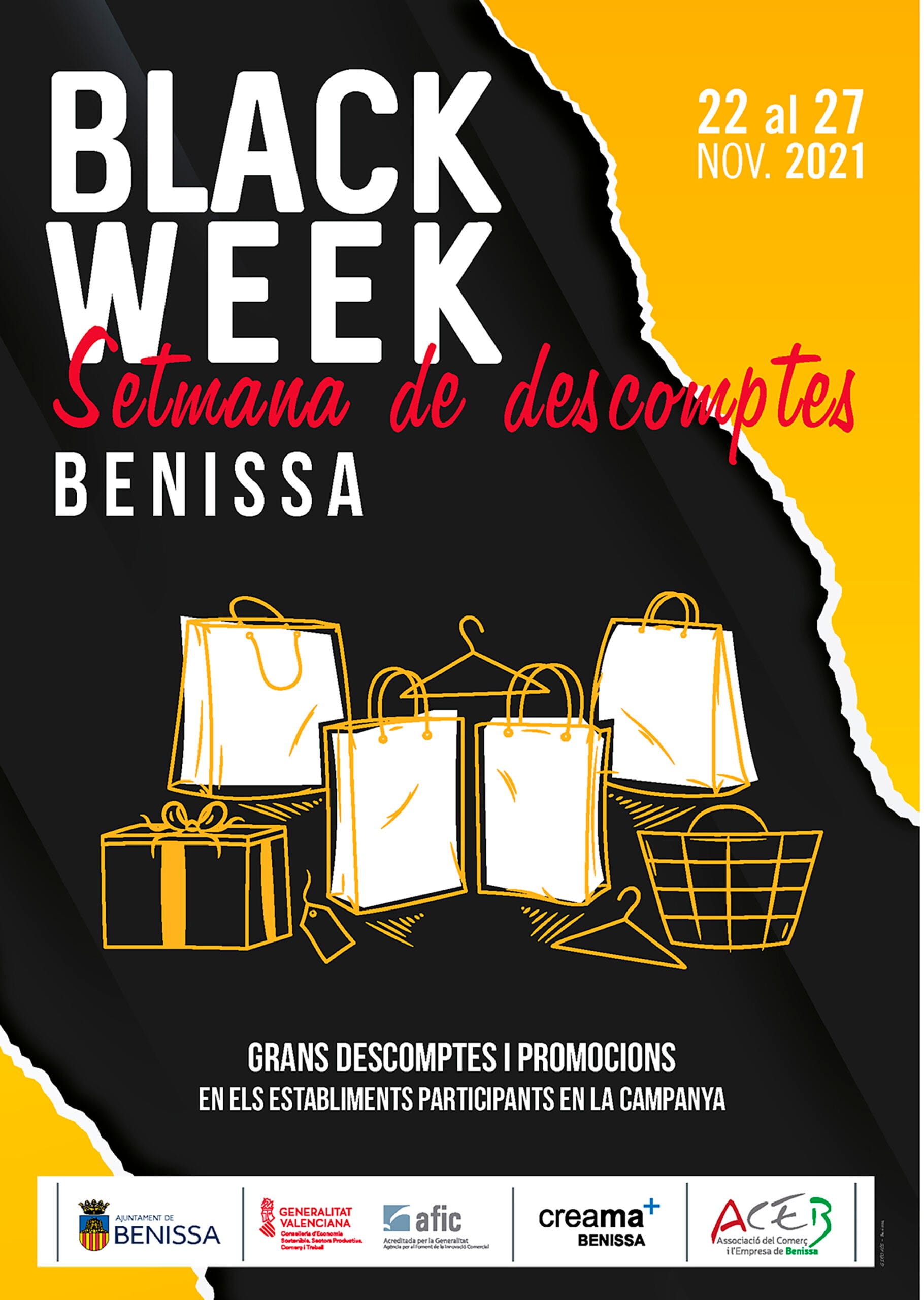 22 de noviembre de 2021 - 12:17 1 de 2Foto SiguienteVer el artículo original: Benissa Black Week impulsa el comercio local en una semana llena de descuentos y promociones Cartel Benissa Black Week Benissa Black Week, del 22 al 27 de noviembre