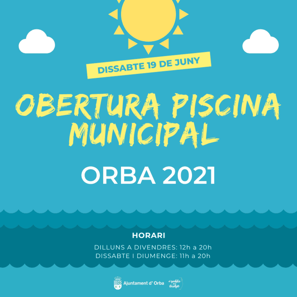 Horarios de la piscina de Orba para la temporada de verano 2021.