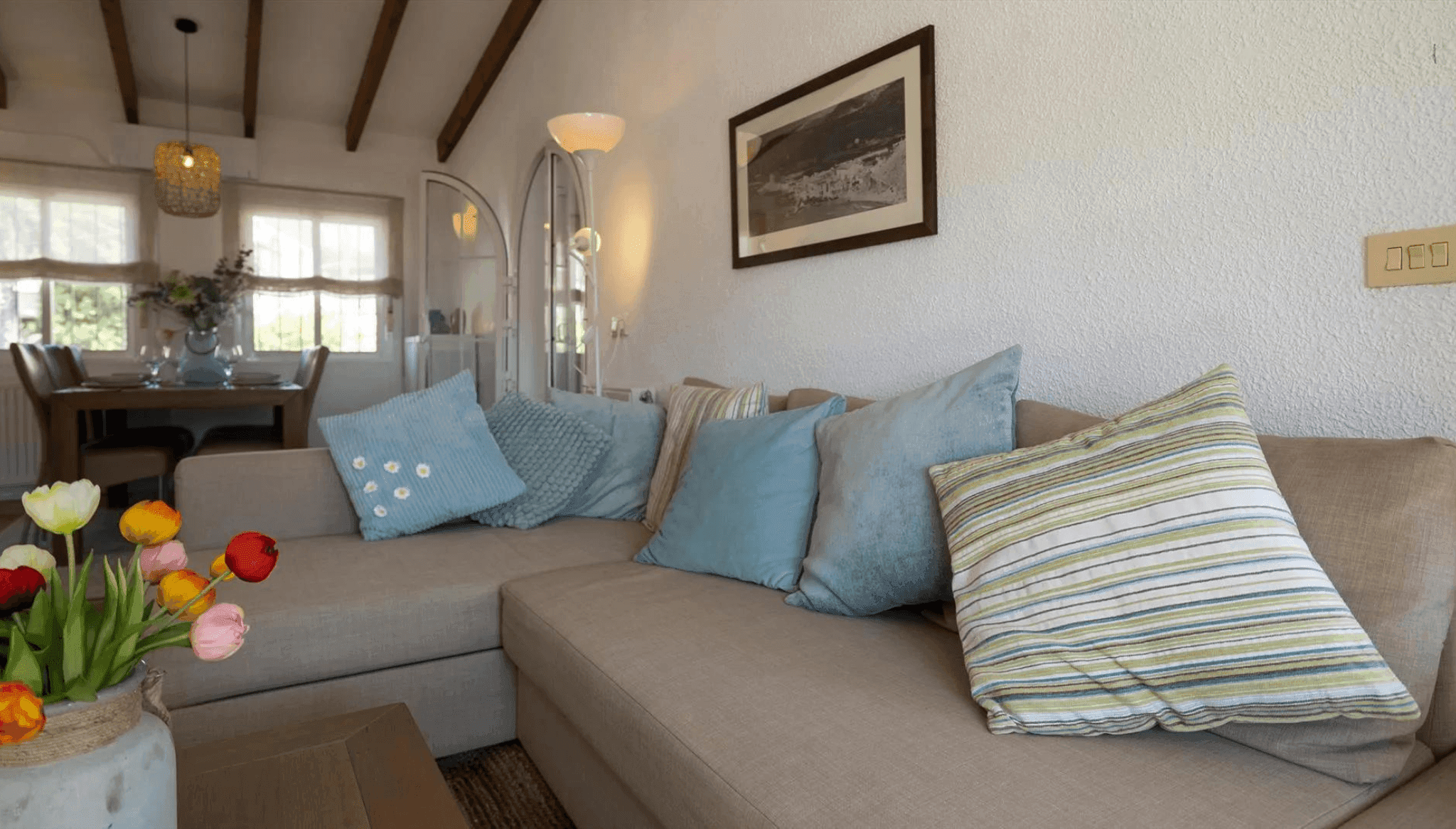 11 de enero de 2024 - 14:41Un salón acogedor para disfrutar durante tu escapada Foto Anterior13 de 16Foto SiguienteVer el artículo original: Casa Basta: una escapada de lo más acogedora en esta casa de Moraira Esta es la terraza con vistas que ofrece este apartamento Este baño te ofrece una ducha como esta para relajarte Gran piscina comunitaria para darte un chapuzón en verano Habitación doble ideal para familias o amigos Inmediaciones de la viviendas, bellas y acogedoras para disfrutar de tu escapada Tomando el sol en unas tumbonas tan cómodas como esta siempre es buena opción Unas vistas de ensueño desde tu terraza privada Vivienda mediterránea para disfrutar tus vacaciones en Moraira Bañera a tu disposición para relajarte tras un arduo día Cocina tus mejores platos en esta hermosa cocina Descansa como nunca en una habitación tan acogedora como esta Disfruta de unas vistas privilegiadas desde el apartamento Relájate en este salón con sofá chaise longue Un salón acogedor con chimenea Una mesa hasta para seis comensales Una villa con espectaculares vistas para disfrutar de unas vacaciones en Moraira