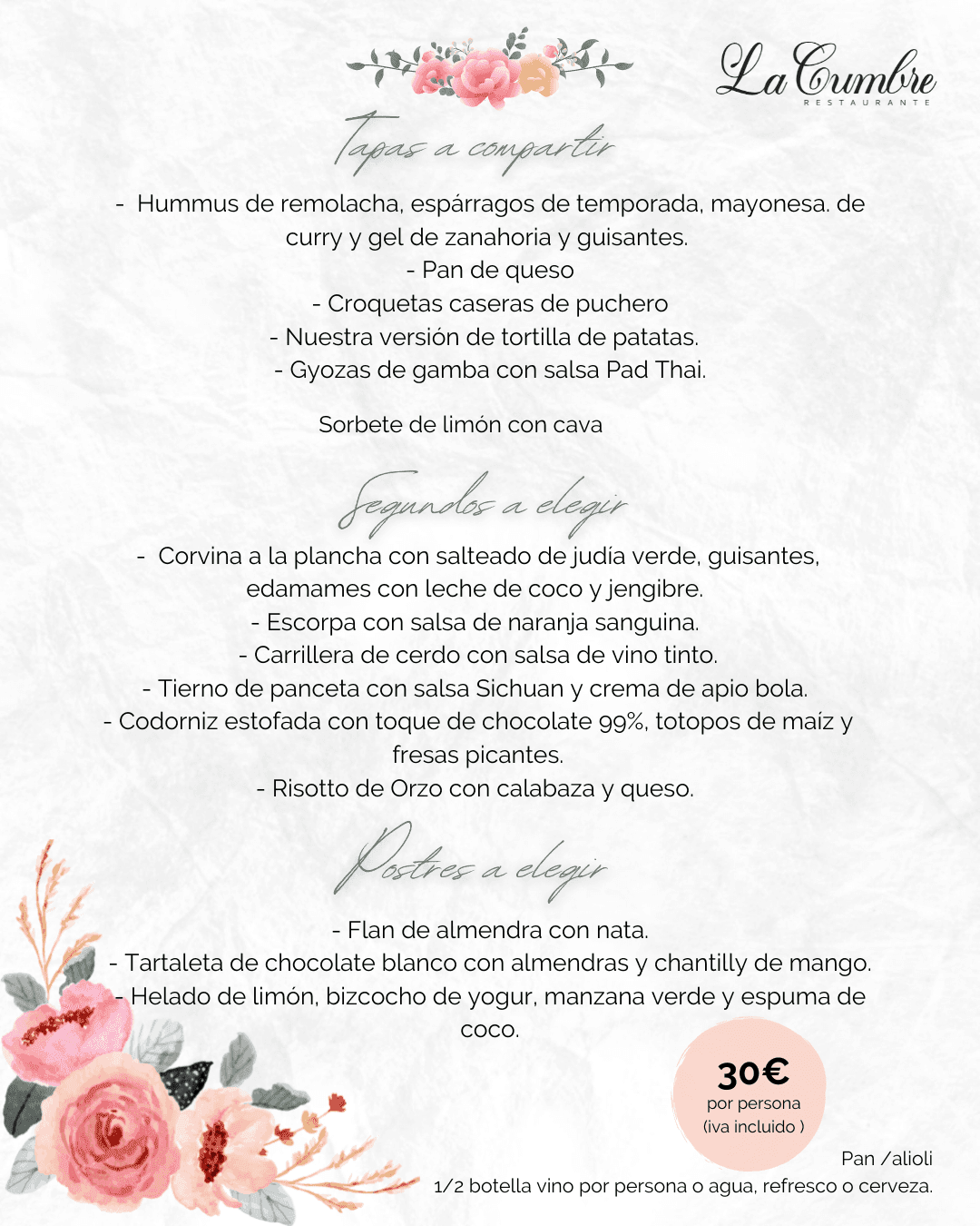 Menú completo de primavera por 30€