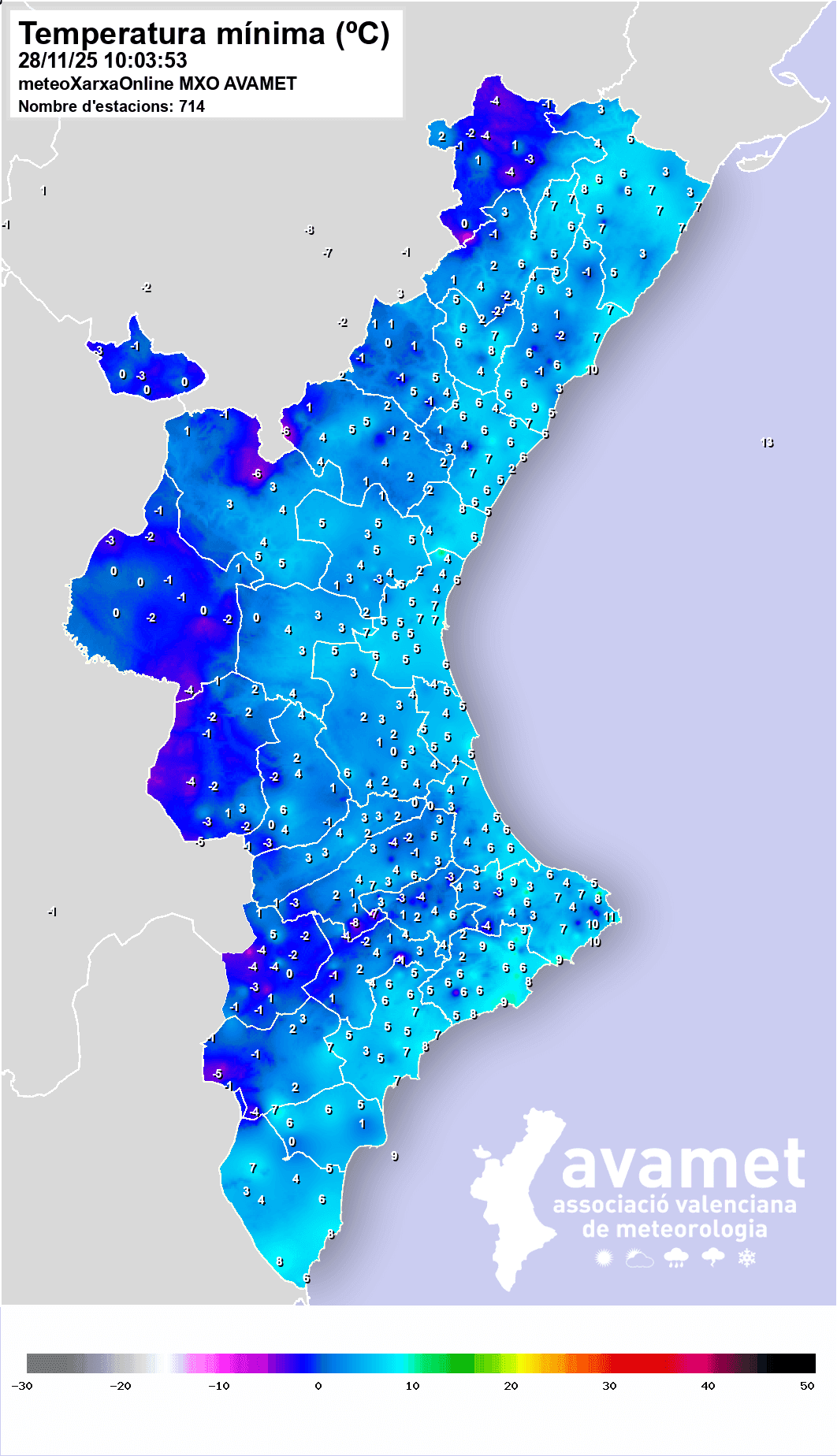 28 de noviembre de 2025 - 10:10 1 de 2Foto SiguienteVer el artículo original: El frío irrumpe con fuerza en la Marina Alta: varias localidades amanecen bajo cero Mapa de las temperaturas mínimas en la Comunitat Valenciana, AVAMET Coche congelado en Dénia (archivo)