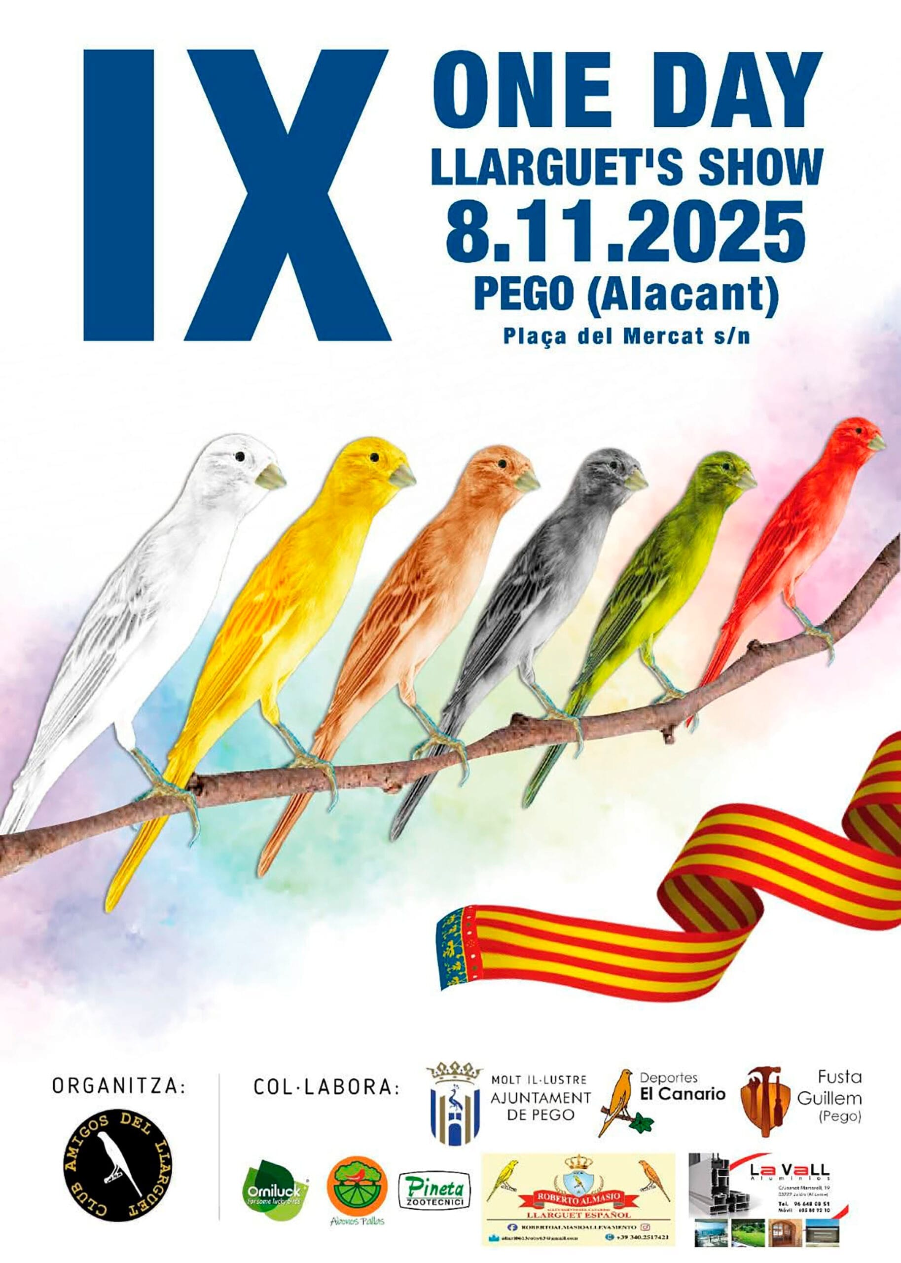 06 de noviembre de 2025 - 14:53 Foto Anterior2 de 2Ver el artículo original: El ‘One Day Llarguet’s Show’ convierte a Pego en el epicentro mundial del canario autóctono valenciano Novena edición del One Day Llarguet Show en Pego Cartel de la novena edición del One Day Llarguet Show en Pego