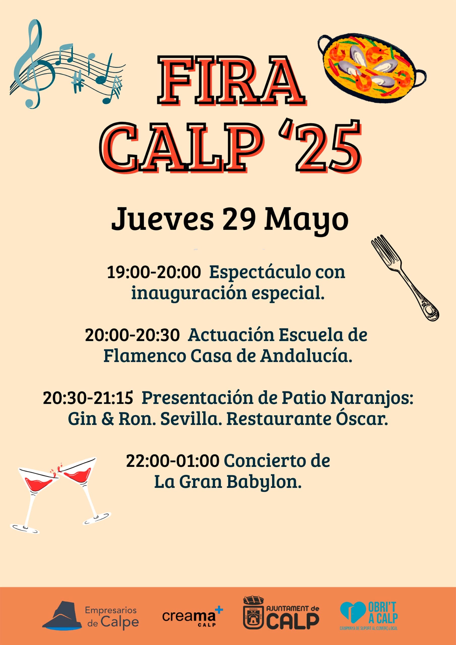22 de mayo de 2025 - 13:18 Foto Anterior4 de 7Foto SiguienteVer el artículo original: FiraCalp 2025 vuelve con mucha gastronomía y comercios, tributo a Sabina y la Orquesta Mondragón Presentación de la XV edición de FiraCalp este 2025 FiraCalp (archivo) Programación de FiraCalp 2025 el viernes 30 de mayo Programación de FiraCalp 2025 el jueves 29 de mayo Cartel de FiraCalp 2025 Programación de FiraCalp 2025 el domingo 1 de junio Programación de FiraCalp 2025 el sábado 31 de mayo