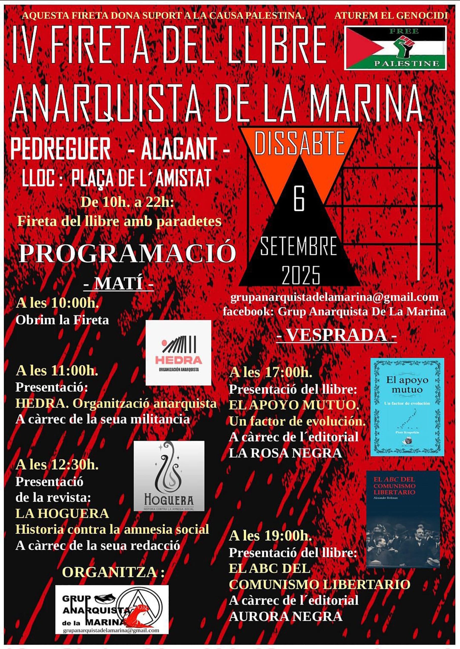14 de agosto de 2025 - 12:04 Foto Anterior2 de 2Ver el artículo original: La Fireta del Llibre Anarquista de la Marina celebra su cuarta edición en Pedreguer IV Fireta del llibre Anarquista de la Marina en Pedreguer Cartel de la IV Fireta del llibre Anarquista de la Marina en Pedreguer