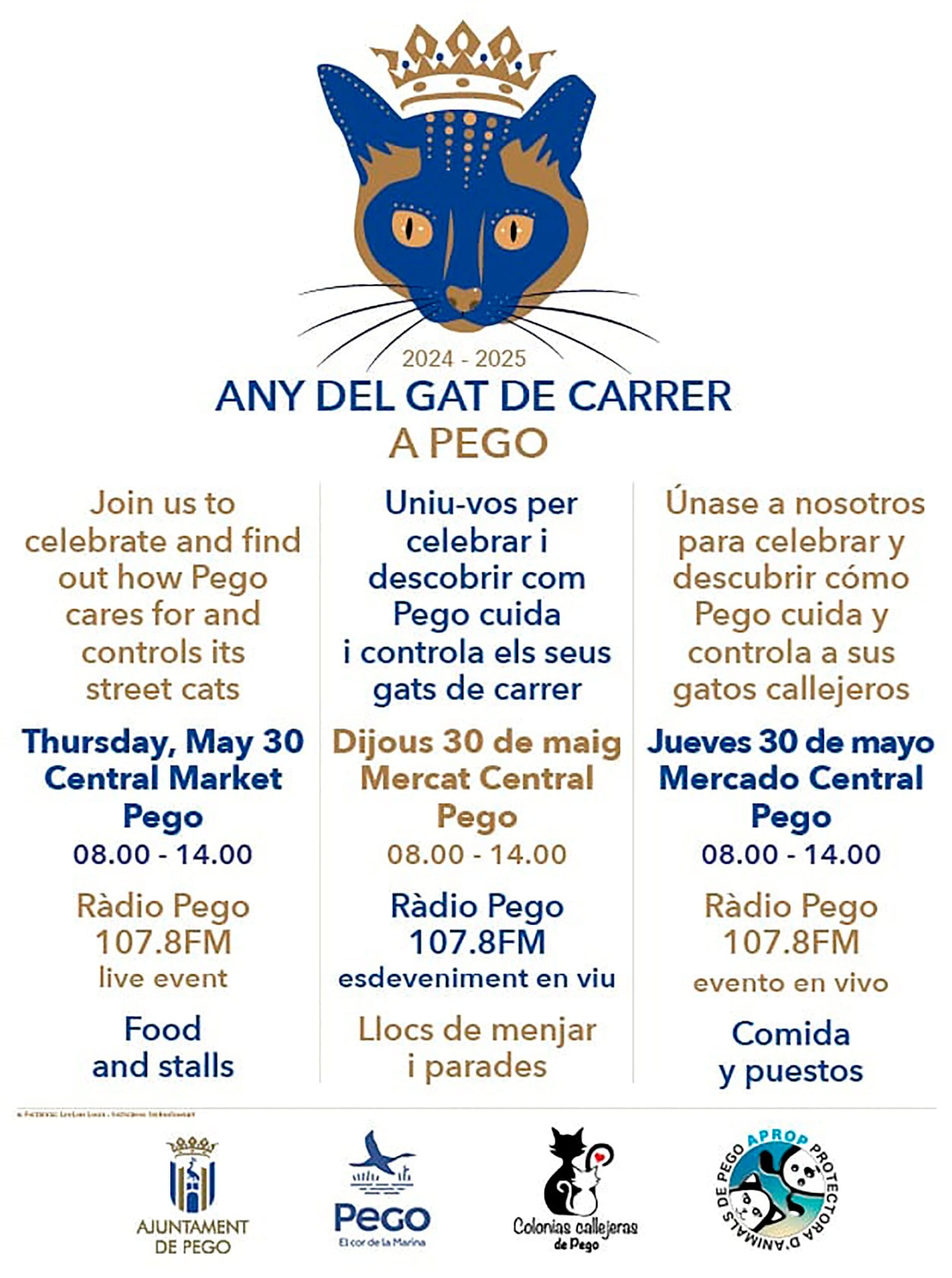 21 de mayo de 2024 - 11:45 Foto Anterior2 de 3Foto SiguienteVer el artículo original: Pego declara el «Año del gato de la calle» para concienciar a los vecinos sobre su amparo por la Ley de Bienestar Animal Josep Mengual, regidor de Bienestar Animal de Pego Jornada del «Año del gato callejero» 2024-2025 en el mercado municipal de Pego ‘Año del gato callejero’ 2024-2025 en Pego