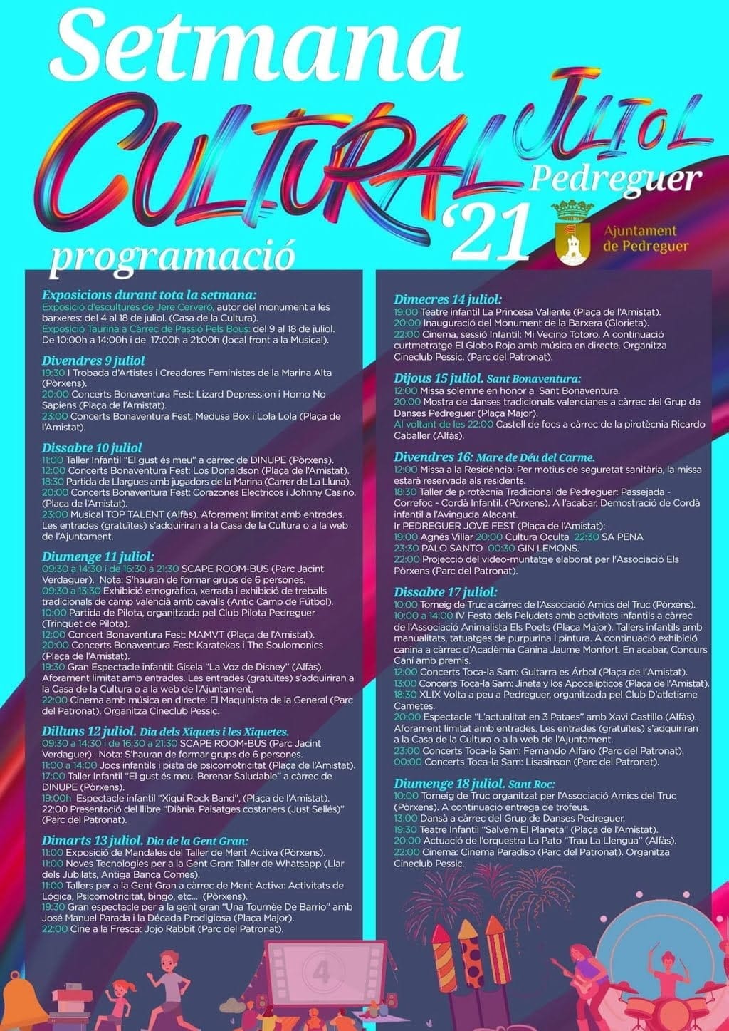 La programación cultural del mes de julio en la localidad de Pedreguer está llena de actividades