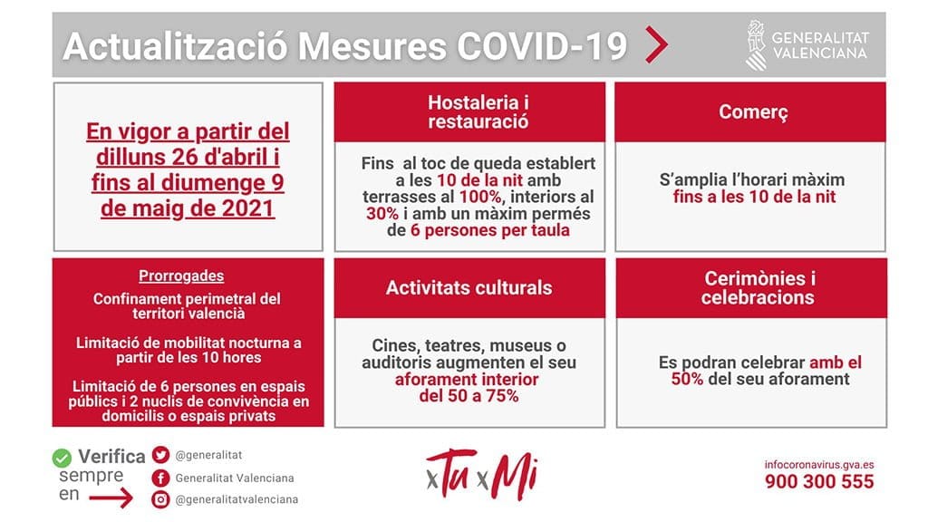 22 de abril de 2021 - 21:45Restricciones vigentes hasta el 9 de mayo de 2021. Foto Anterior2 de 2Ver el artículo original: Sigue la desescalada: La hostelería podrá abrir hasta las 22h y se mantiene el toque de queda Terrazas llenas en Dénia Actualización medidas Covid-19
