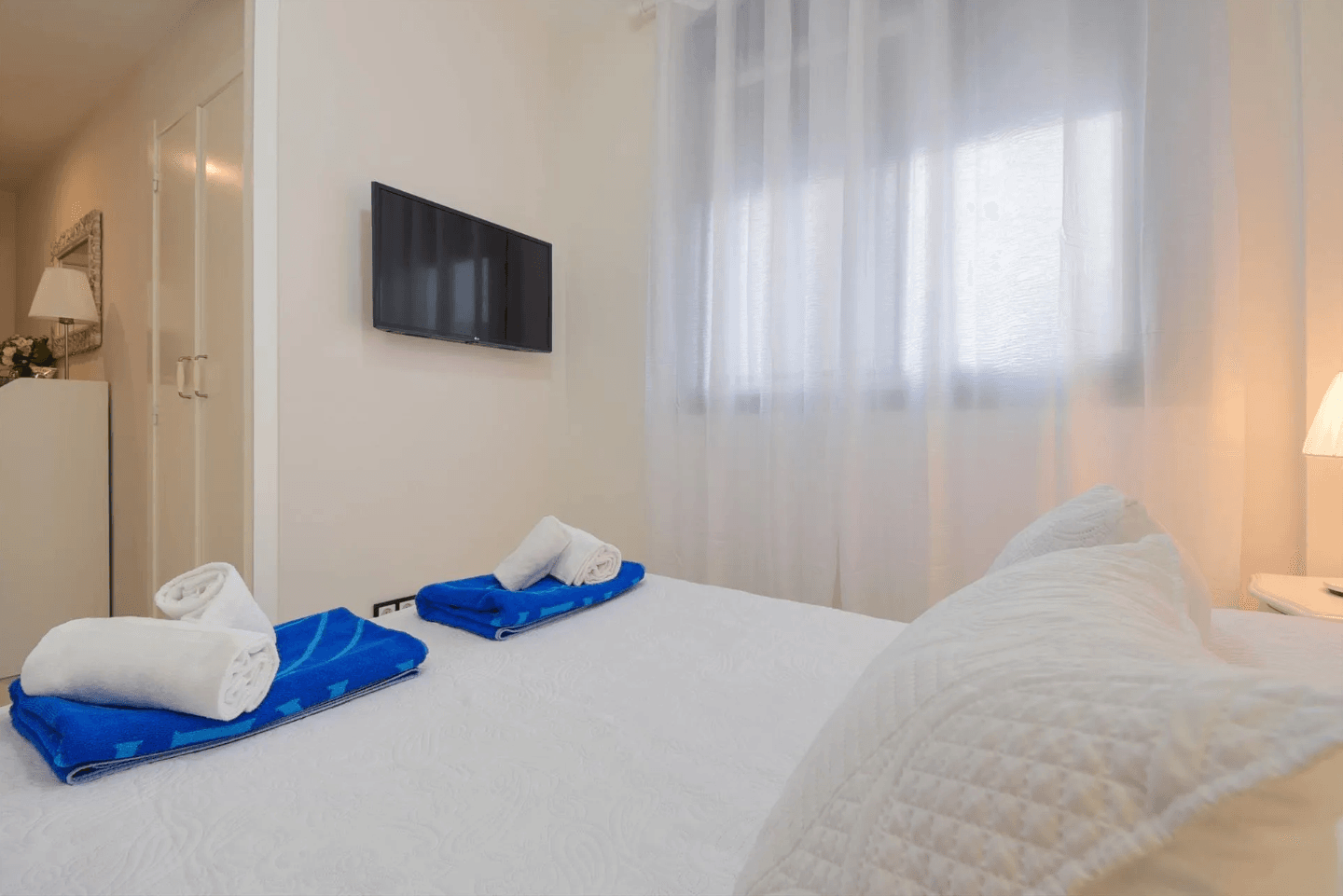 Perfecto dormitorio principal del alojamiento donde descansar durante la estancia en la ciudad gracias a los tonos claros y la luz natural.