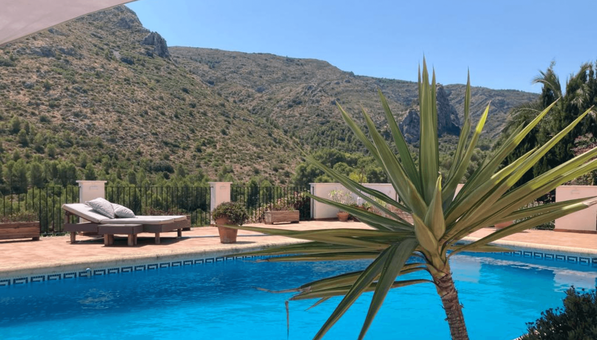 28 de septiembre de 2023 - 15:45Preciosa piscina con vistas a la montaña Foto Anterior13 de 18Foto SiguienteVer el artículo original: Tu hogar ideal entre montañas: un rincón de tranquilidad con vistas panorámicas en Pedreguer Acogedora sala de estar decorada de manera rústica Agradable porche cerrado para disfrutar los días de invierno Baño completo con vistas a la naturalez Cocina con flamante barra americana Cocina de estilo urbano con muebles de madera Comedor y sala de estar diáfana para disfrutar en familia y con amigos Dormitorio amplio y muy luminoso Dormitorio con puerta independiente a la terrraza Dormitorio luminoso con baño en suite Exterior de la vivienda en Pedreguer Exterior de la vivienda, con la espectacular piscina y porche Fabulosas vistas al Monte Solanada de Pedreguer Piscina de la vivienda rodeada de abundante naturaleza Práctico aparcamiento techado para los vehículos Terraza exterior con piscina de 53 metros Terraza superior para disfrutar las noches de verano Vistas al monte Solana de Pedreguer Villa de ensueño en Pedreguer disponible con