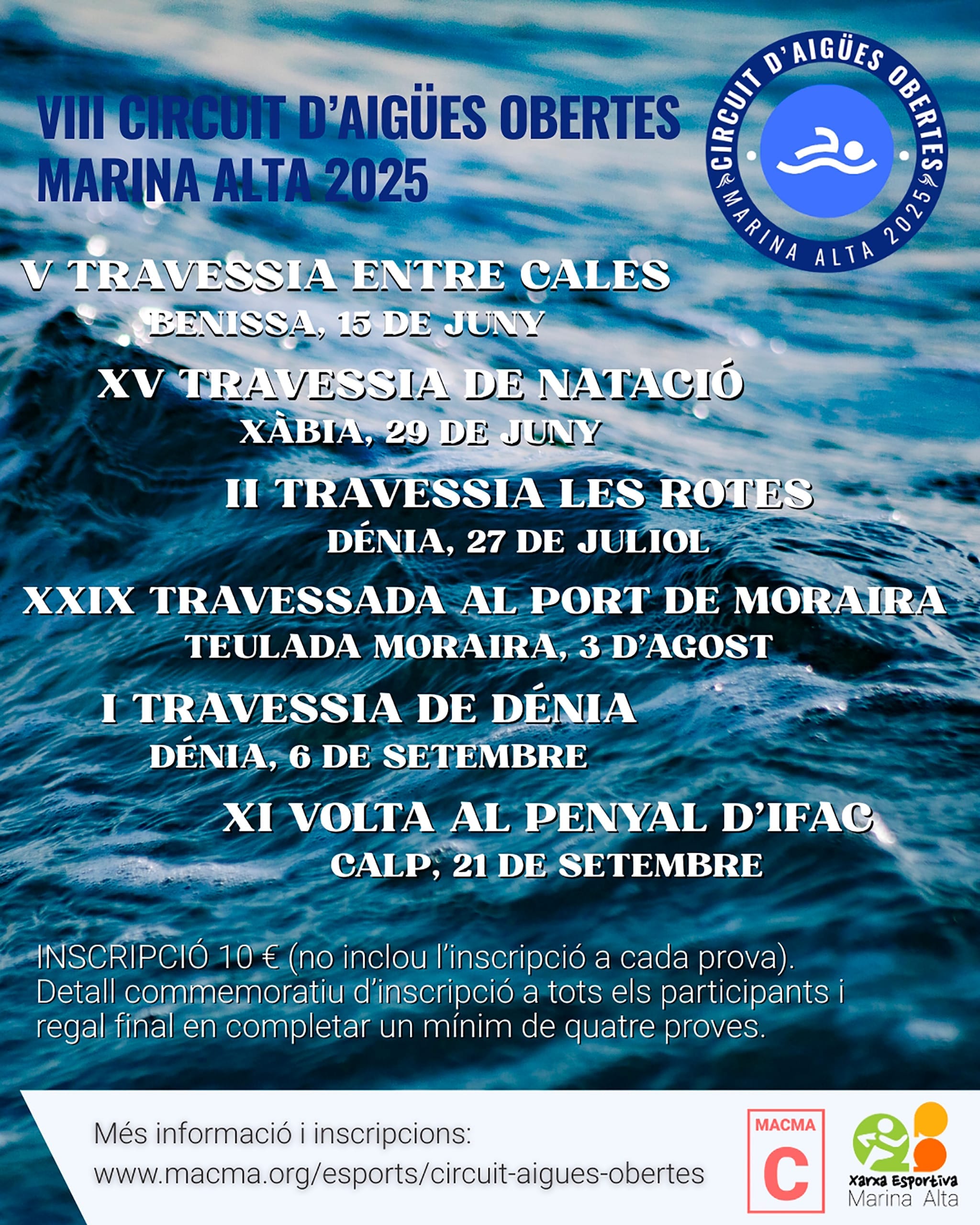 09 de mayo de 2025 - 13:39 Foto Anterior3 de 3Ver el artículo original: Vuelve el Circuit d’Aigües Obertes de la Marina Alta con seis pruebas por toda la comarca Travesía a nado en Xàbia (archivo) Calendario de fechas del Circuit d’Aigües Obertes de la Marina Alta Cartel del Circuit d’Aigües Obertes de la Marina Alta